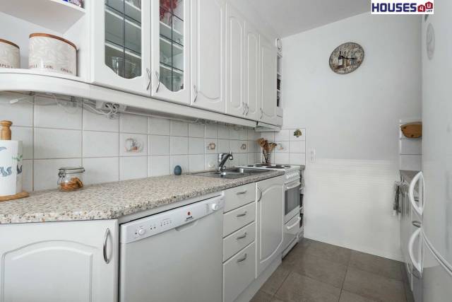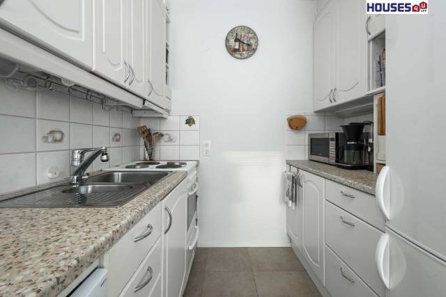 | Keittiö | Jääkaappi ja pakastin: jääkaappi/pakastin Muut varusteet: astianpesukone, liesituuletin / suodatin Tasot: laminaatti Seinät: maalattu, tapetti, osalaatoitus Lattia: laatta Liesi/uuni: sähköliesi |