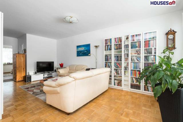 Kysytyllä, puistomaisella ja väljään rakennetulla alueella lapsiystävällinen asunto.