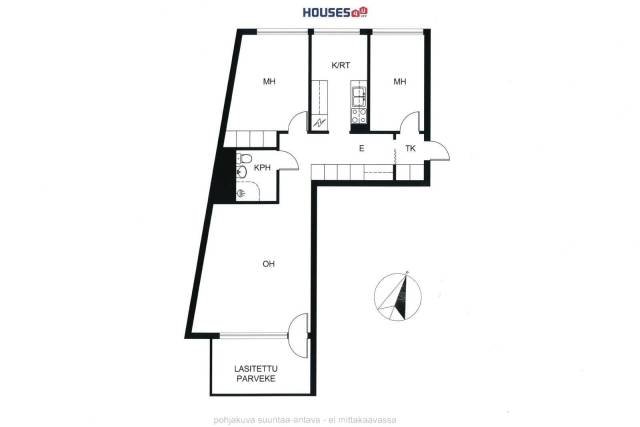 | Huoneistoselitelmä | 3 h, k, kph, lasitettu parveke |