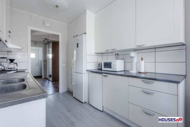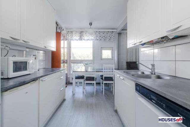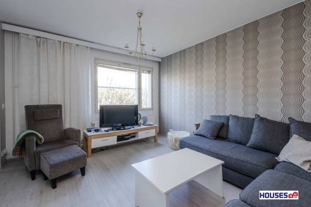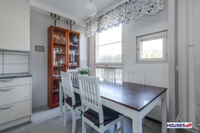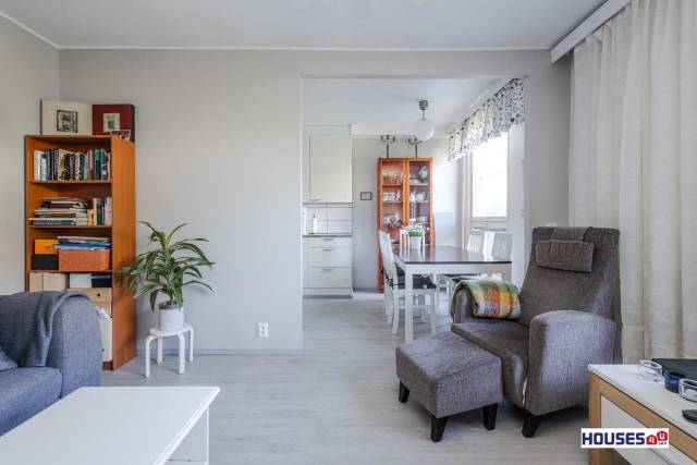 | Olohuone | Asunto on käynyt juuri läpi pintaremontin, seinät maalattu, ovet, listat ja kynnykset vaihdettu. Olohuoneessa, ruokailutilassa ja keittiössä vinyylilattia ja seinät maalattu, tehosteseinä tapettia. |