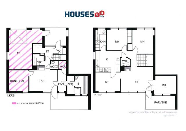 | Huoneistoselitelmä | 4 h, takkah, k, rt, 2 x wc, sauna, pukuh, pesuh. vh |
